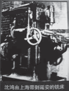1937年,日軍占領上海前夕,上海私人資本家沈鴻把一部分機器遷到武漢,想為抗戰效力。可是,他們的要求并沒有得到國民黨當局的理睬。后來,聽一個朋友說,延安是堅持抗日的,那里人人都有工作做。于是,他找到武漢八路軍辦事處,經人介紹,克服困難,帶了他的七個徒弟和十一部機器以及兩箱技術書籍來到延安。